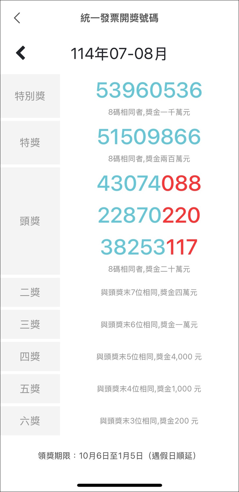 領獎期間自114年10月06日起至115年01月05日止